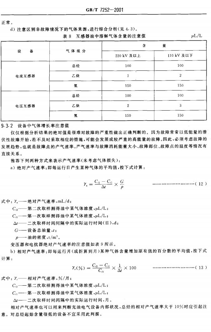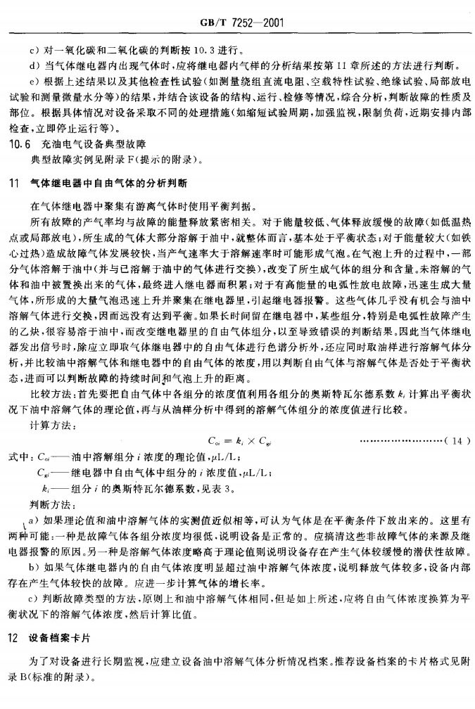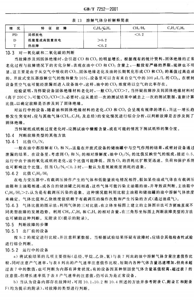 GBT 7252-2001 變壓器油中溶解氣體分析和判斷導則